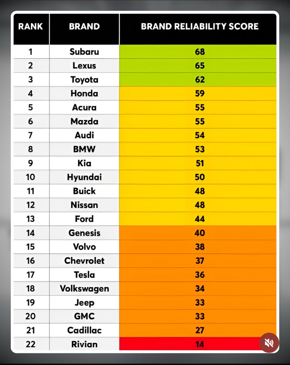 In the most recent Consumer Report reliability listing, Subaru has come out on top. What do y'all think about that?